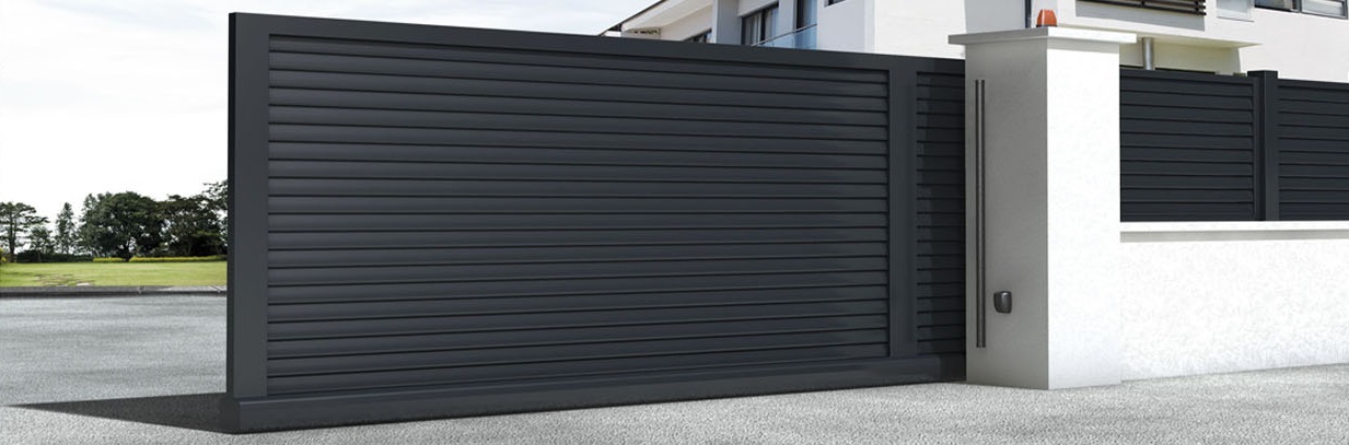Премиальное решение для панорамных ворот с минеральным фасадным остеклением в стильном чёрном цвете.